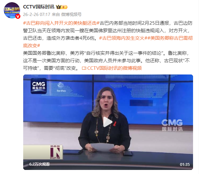 古巴内务部当地时间2月25日通报,古巴边防警卫队当天在领海内发现一艘在美国佛罗里达州注册的快艇违规闯入在线配资炒股选,对方开火,古巴还击,造成外方袭击者4死6伤。